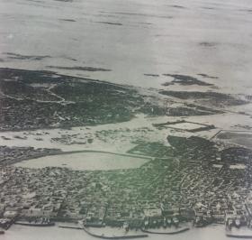 Aerial photograph of a section of Kuwait City, 1927 — a rare view capturing the city’s early architecture and modest urban beginnings before modern transformation.