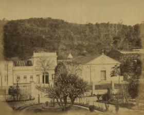 Front view of the Mother Church in a rare 1860 photograph by Pedro Hees, highlighting the classical architecture of the era.