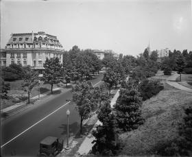A historical snapshot of a street in Jordan at the beginning of the 20th century, showing the tranquility and simplicity of the architecture and daily life before urban expansion and the modern era.